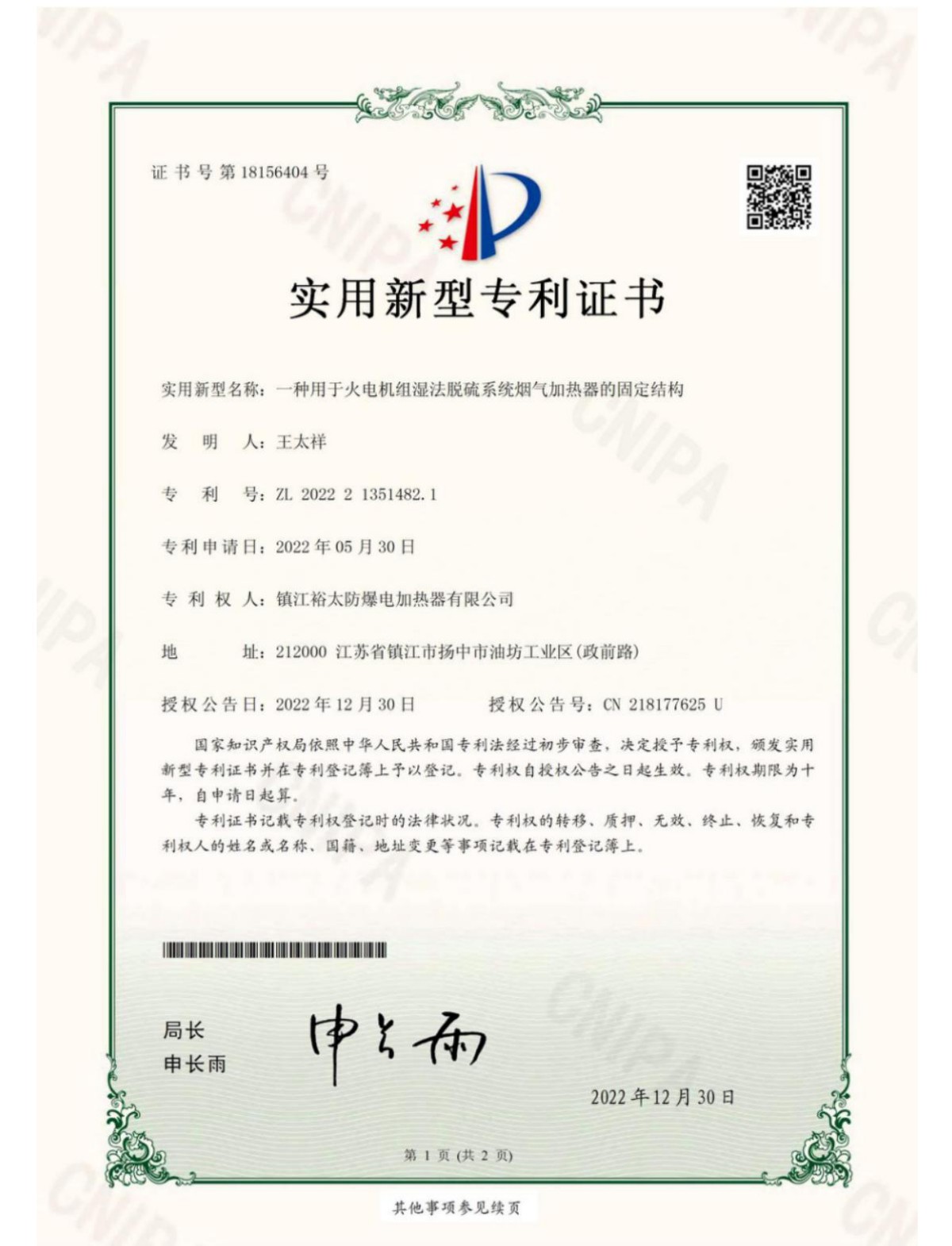 《一种用于火电机组湿法脱硫系统烟气加热器的固定结构》由镇江裕太防爆电加热器有限公司发布于2025年9月13日